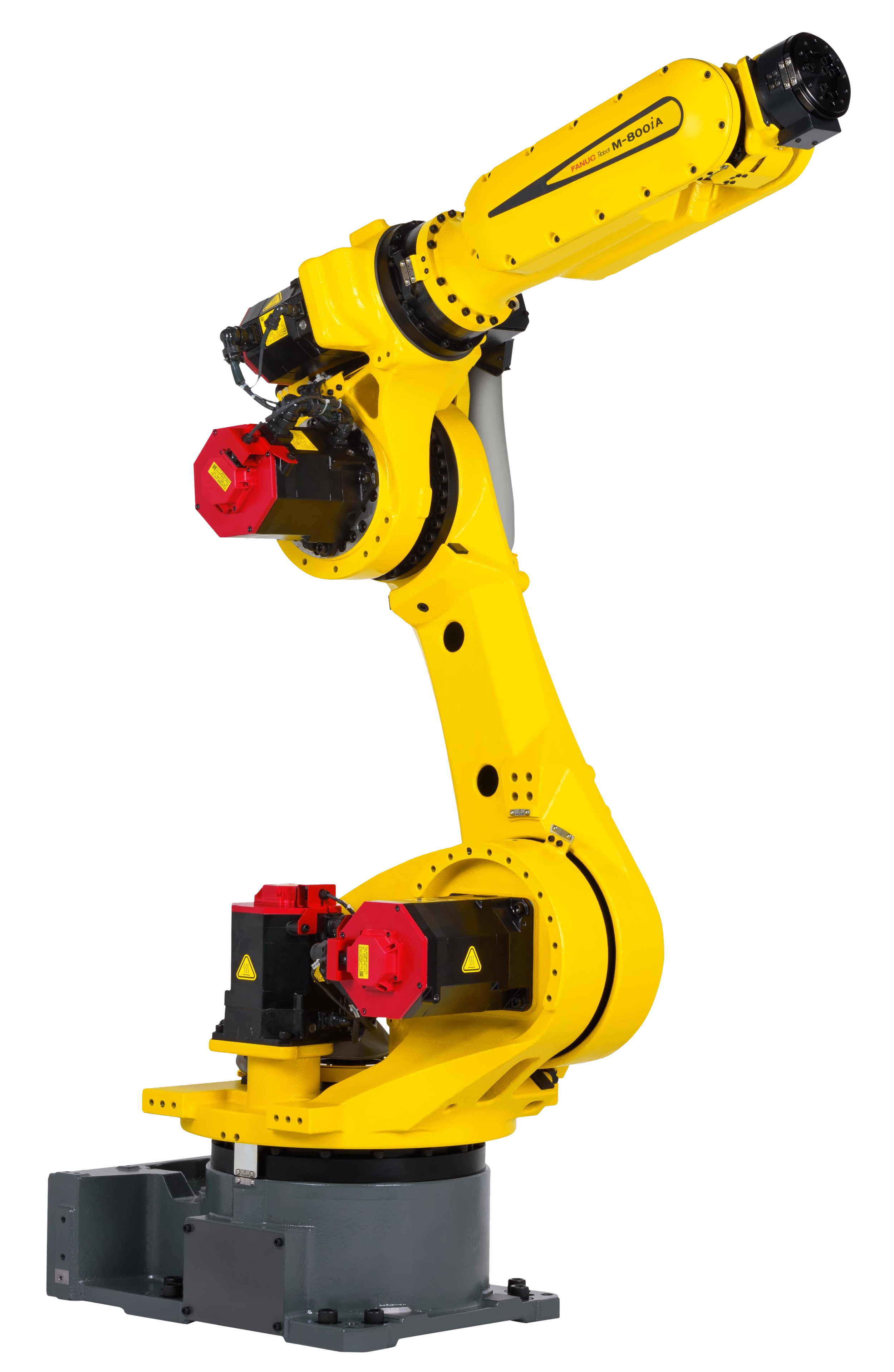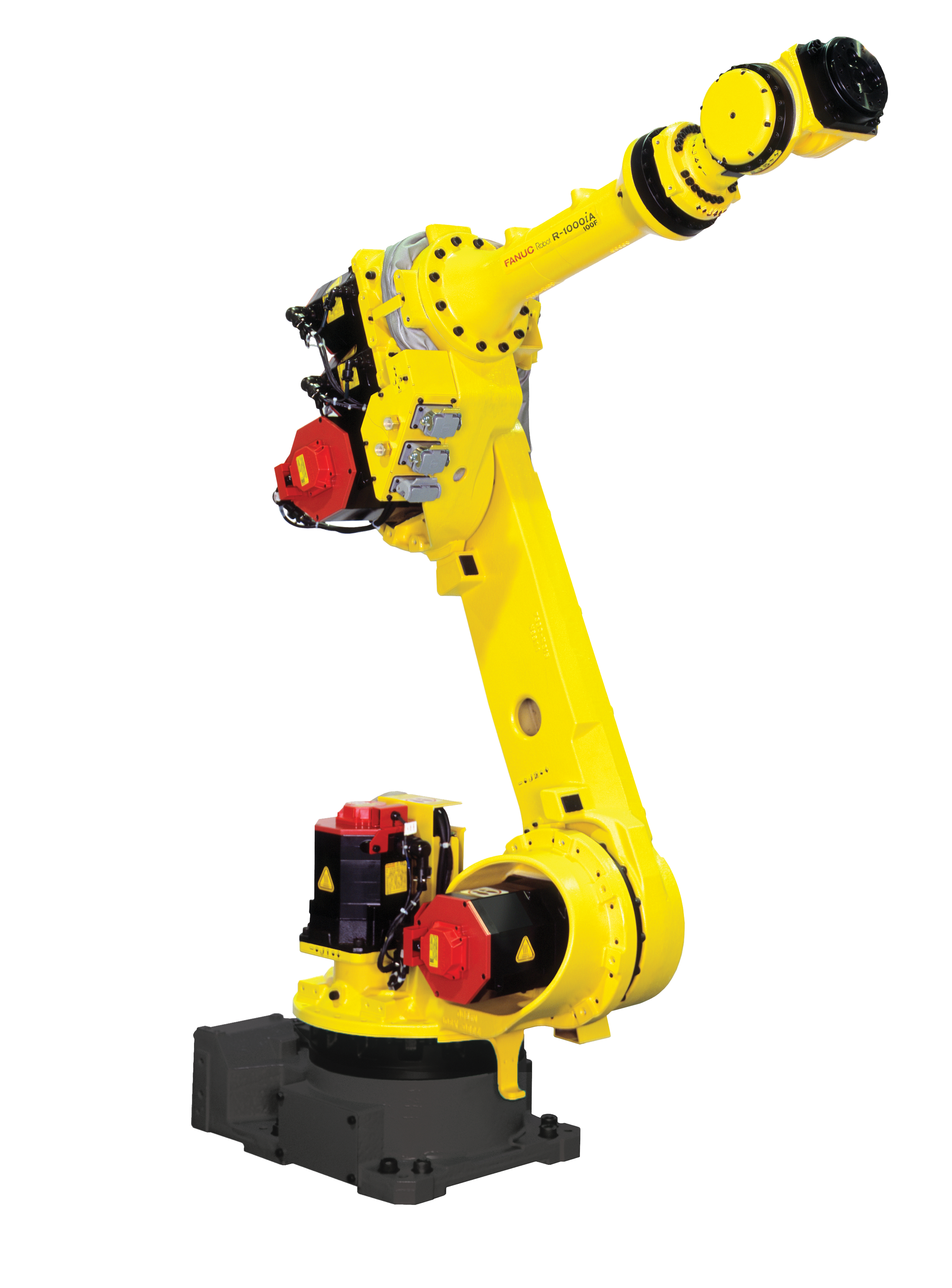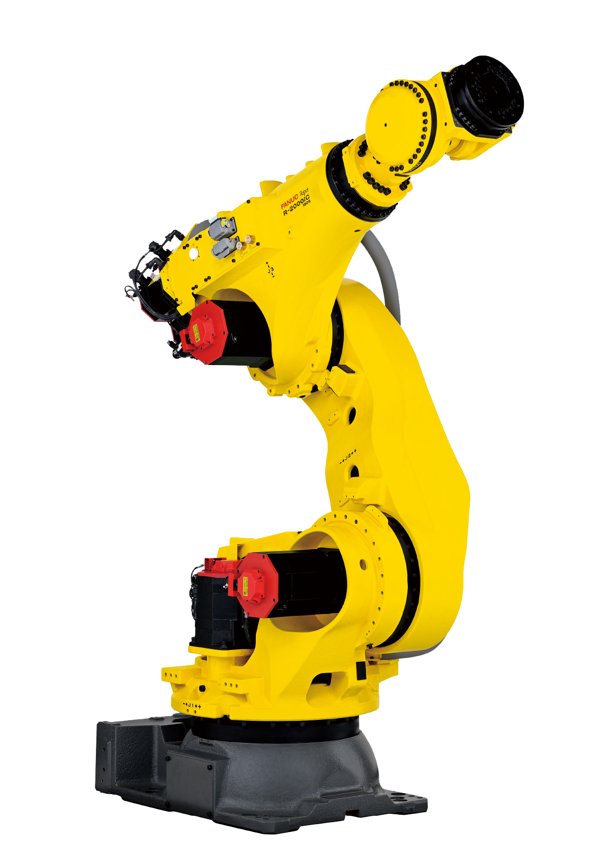 The R-2000 series is the most successful FANUC robot in the world. Featuring high performance capabilities and payload capacities ranging from 100 to 270 kg, it makes the perfect solution for multiple applications involving high payloads. Compact and high speed with a slim wrist and arm, the R-2000 is an all-rounder that is designed for all material handling applications and robotic spot welding.