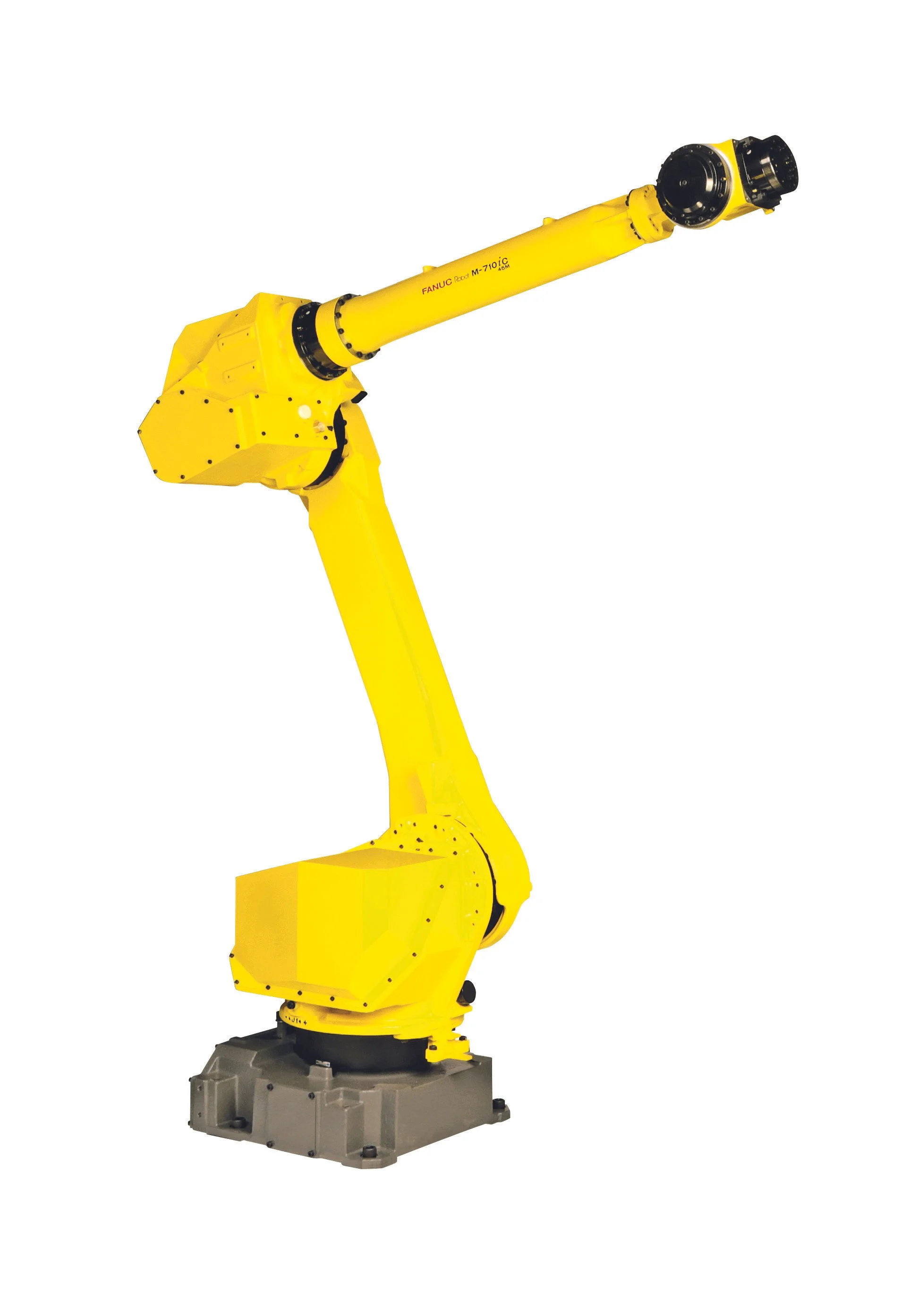 This innovative series of lightweight robots is designed for handling applications in the medium payload range from 12 to 70 kg. Featuring a slim wrist, rigid arm and small footprint, M-710 Series robots are suitable for a wide range of applications and come with a reach of up to 3.1 m. High axis speeds make this series extremely fast. They also boast excellent payload capacities and inertia – With a vast array of models available, the FANUC M-710 Series is capable of covering a diverse range of industries.